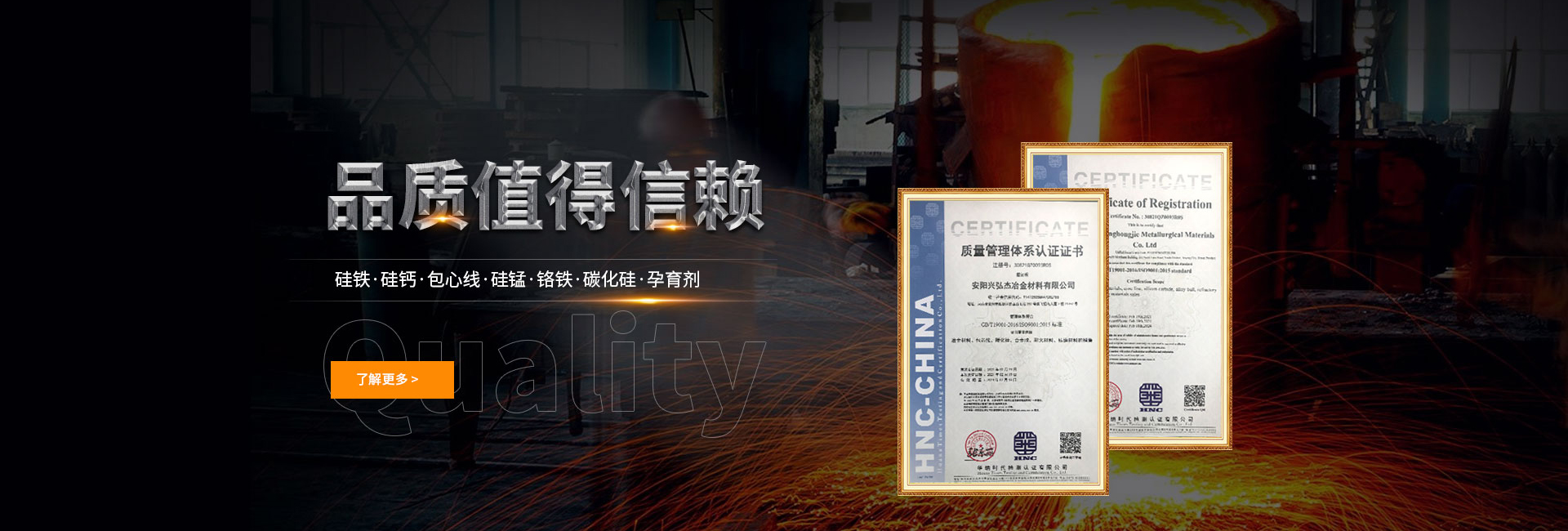 公司拥有国内优质的治炼设备,主要生产设备有中频电炉、破碎筛分生产线、氮化铬铁生产线,合金包芯线生产线等。是从事生产销售硅钙合金、硅铝合金、多元铁合金、合金包芯线、氮化铬铁的企业。生产的产品品种系列齐全,质量稳定,适用范围广,能满足客户的不同需求。
